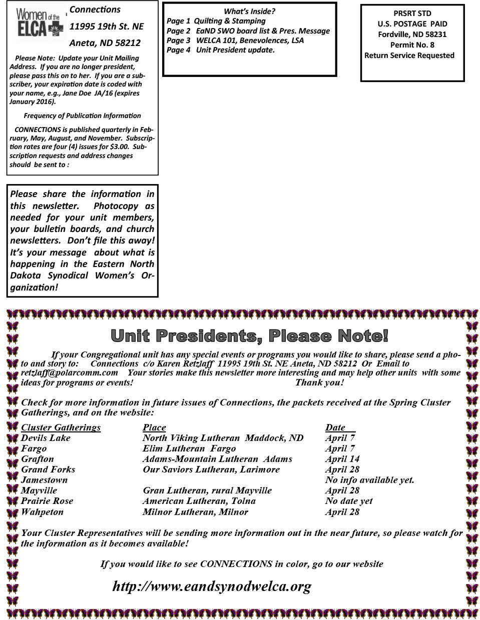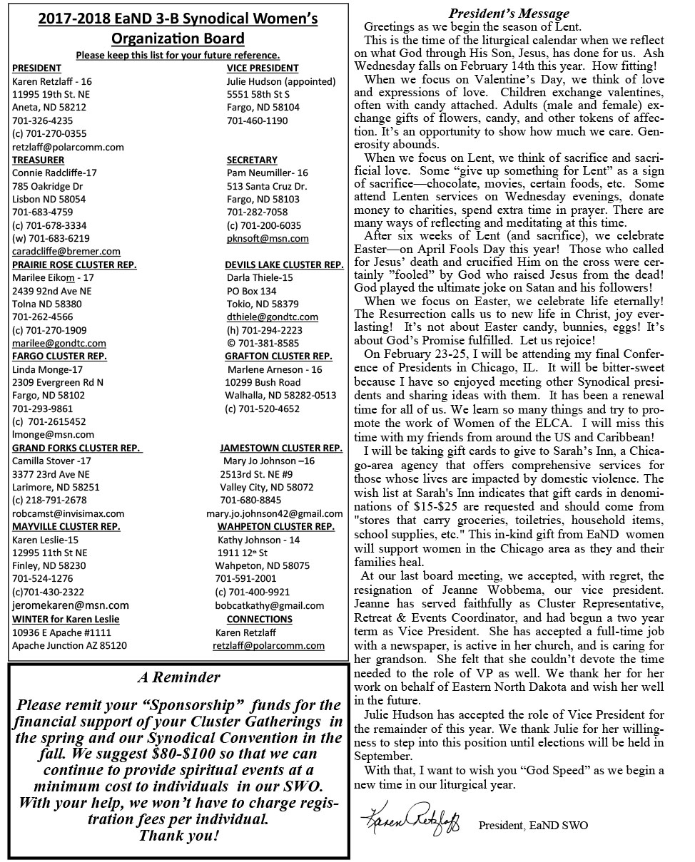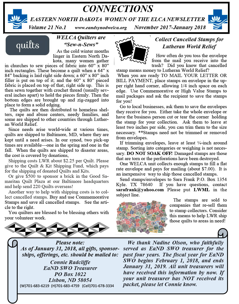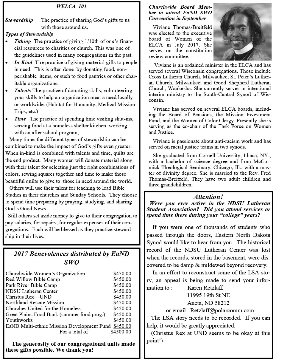 Welcome to Eastern North Dakota Synodical Women’s Organization 3B Women of the Evangelical Lutheran Church in America