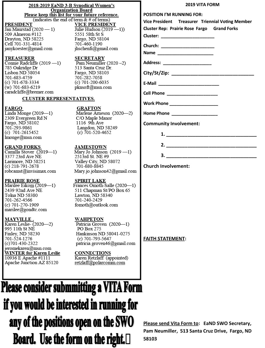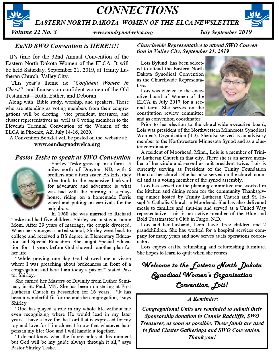 Welcome to Eastern North Dakota Synodical Women’s Organization 3B Women of the Evangelical Lutheran Church in America